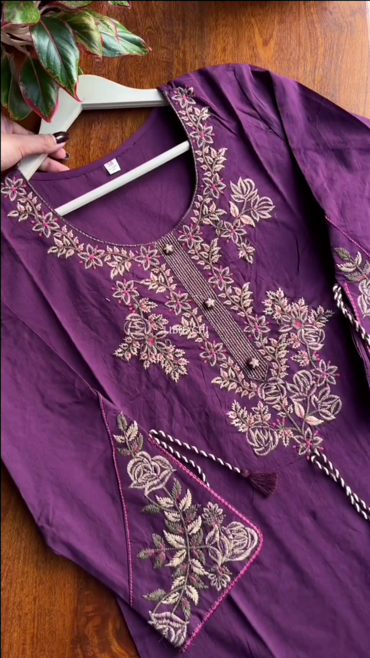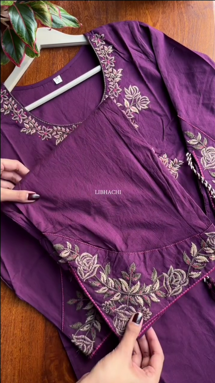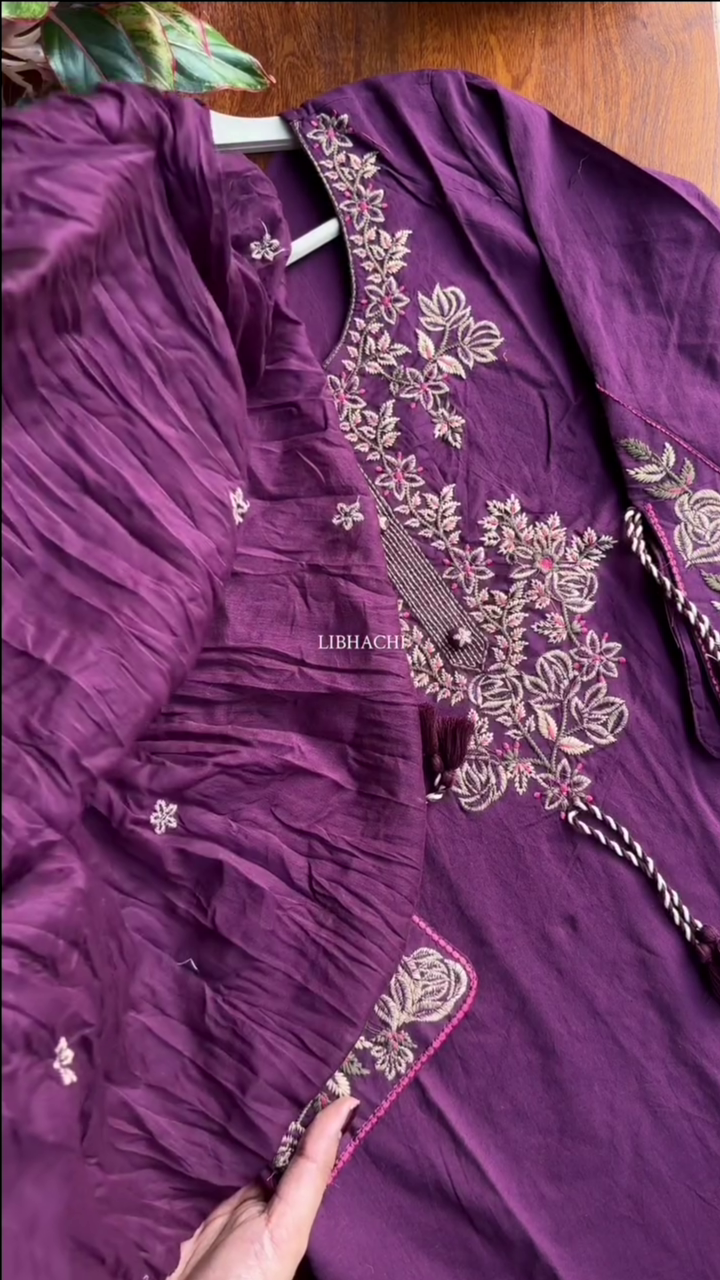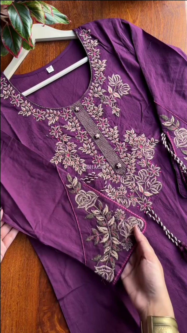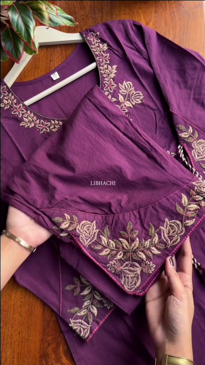 Be the first to review “Burgundy Embellished Cotton Blend Straight Suit Set With Dupatta” Cancel reply